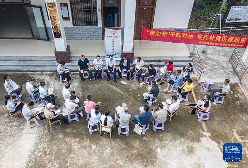 7月16日,在海南省保亭黎族苗族自治县响水镇合口村拍摄的“亲加奔——干群对话解难题”活动现场(无人机照片)。新华社记者 蒲晓旭 摄