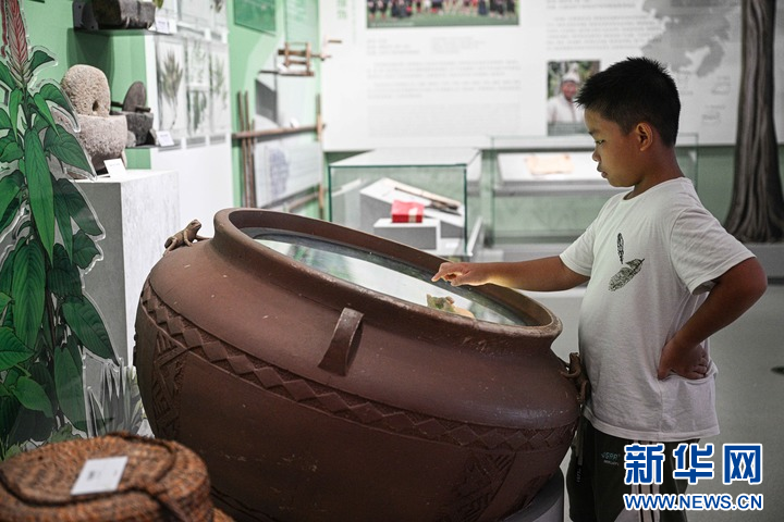 暑假期间,不少小朋友前往位于海南海口的海南省非遗展示中心观看非遗展品,感受非遗魅力,丰富假期生活。