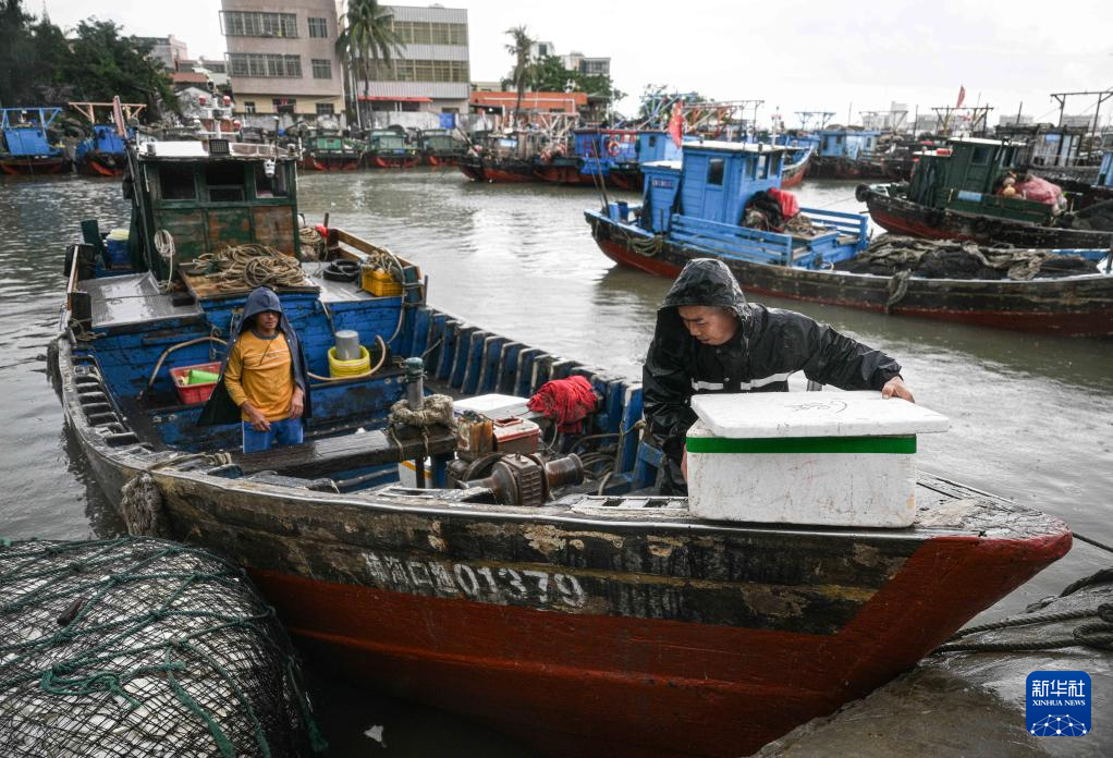 8月16日,渔民在海口三联渔港转运物资,为后续出海捕鱼做准备。新华社记者 蒲晓旭 摄