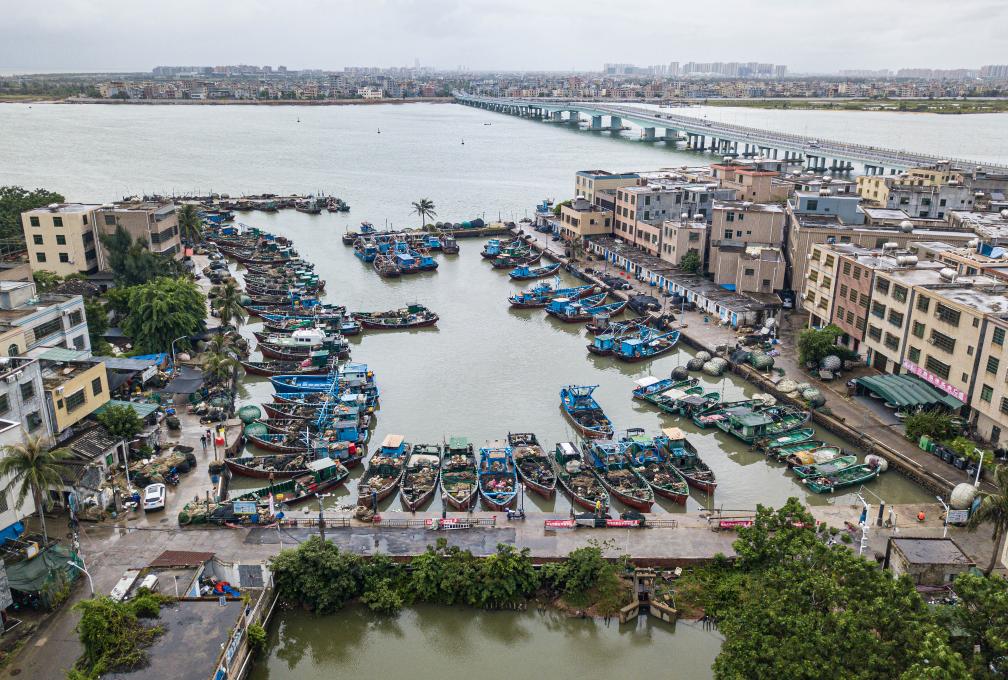 8月16日中午12时,为期三个半月的中国南海伏季休渔期结束。中央气象台发布消息,南海热带低压于当日17时生成。受天气影响,渔船冒险出海易造成人员伤亡和渔船损毁事故。为确保安全,海南省农业农村厅发布提示,请广大渔民按照海南省防风要求暂缓出海,确保渔船在港内安全避风。新华社记者 蒲晓旭 摄