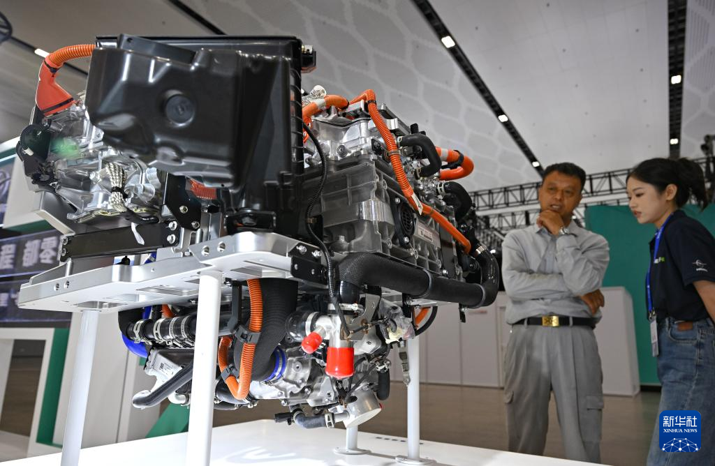9月27日拍摄的2025世界新能源汽车大会上展出的一款混合动力系统。新华社记者 郭程 摄