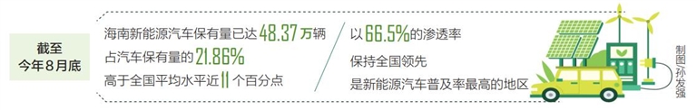 值得一提的是,截至今年8月底,全省新能源汽车保有量已达48.37万辆,占汽车保有量的21.86%,高于全国平均水平近11个百分点。同时,海南更以66.5%的渗透率保持全国领先,是新能源汽车普及率最高的地区。(海南日报全媒体记者邵长春 通讯员林景岳)