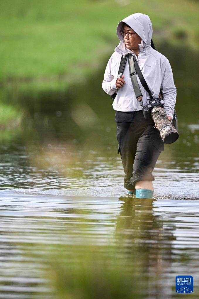 10月2日,海南昌江海尾国家湿地公园管理中心副主任薛美丽在巡护湿地。新华社记者 蒲晓旭 摄