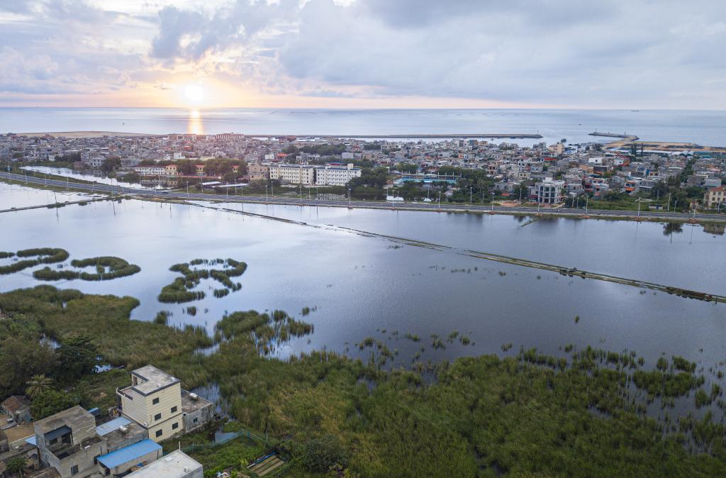 10月3日在海南省昌江黎族自治县拍摄的海南昌江海尾国家湿地公园一隅(无人机照片)。