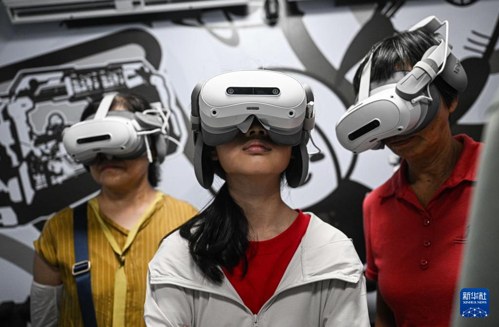 10月7日,游客在文昌航天科普中心进行MR星际穿越体验。新华社记者 蒲晓旭 摄